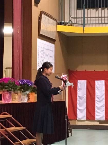 在校生代表から送辞が述べられました。