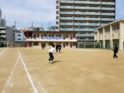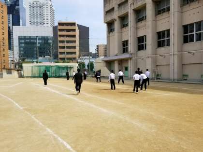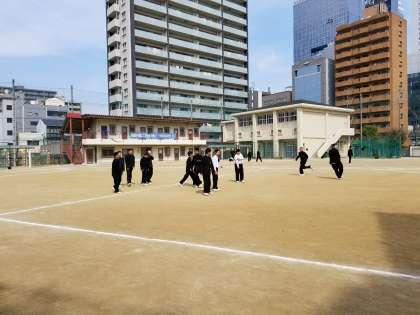 三年生が卒業した運動場では1・2生が運動場いっぱいに拡がって遊んでいました。