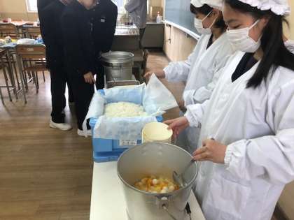 4月11日の給食は入学祝い献立のカツカレーとフルーツ白玉です。