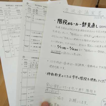 また、「階段のルール一部見直し(試行期間について)」の議案が出されました。昨年度から引き続き取組をすすめています。明日、学級できちんと説明ができるように内容を丁寧に確認しました。