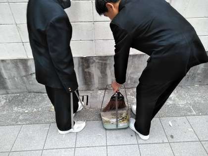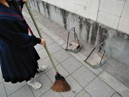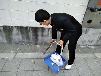 夏に近づくにつれ、葉っぱのごみが多くなりました。小雨が降る中、一所懸命に清掃にとりくんでいました。