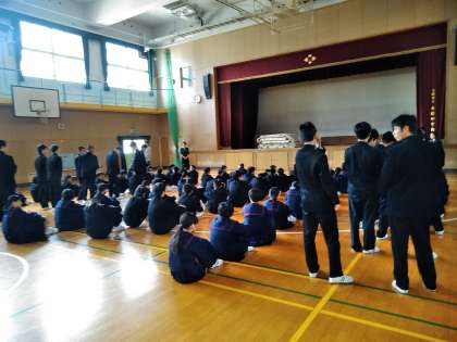 また、今日の集会では、風紀委員による服装チェックときちんと並べている靴の名前の確認もしました。