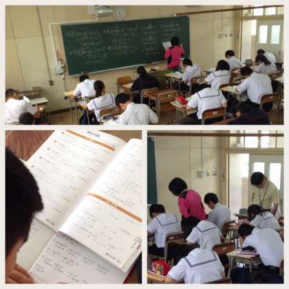 3年生の数学の授業は、TT(ティームティーチング)でテスト直前の問題演習に取り組みました。