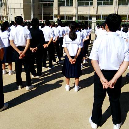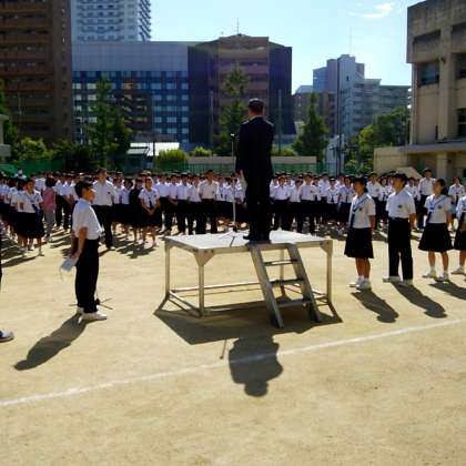 生徒たちは時間をきちんと守って集合し、全校集会をしました。