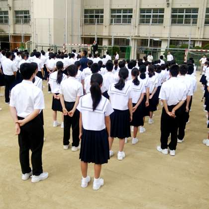 6月2・3日に行われる大阪市中学校春季総合体育大会の開会式では、本校バドミントン部主将が選手宣誓をします。当日に向けて練習をしています。今日の全校集会では、当日と同じように選手宣誓をしてもらいました。とても立派な宣誓ができ、全校生徒から拍手が沸き起こりました。