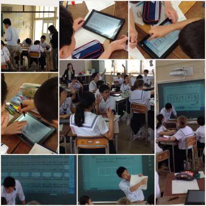 これは、本校が「学力向上推進モデル校」として大阪市教育委員会から選定されたことによるものです。生徒の皆さんは、「実践チーム」の先生が見守る中、タブレットを使った授業に熱心に取り組んでいました。
