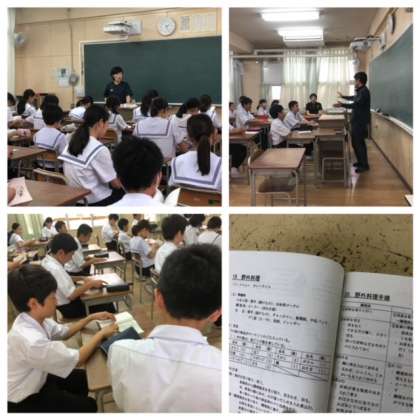 6月8日、1年生は一泊移住での野外料理(カレー)の班ごとにわかれて説明をうけました。