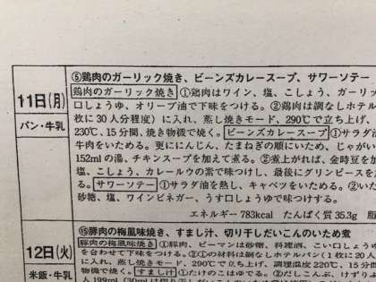 中学校食物アレルギー個別対応用献立表