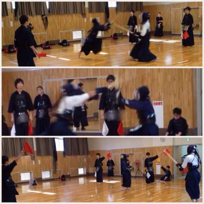 また、試合形式の稽古では、交替で審判を務め、防具を外して、技を見極める練習を兼ねています。