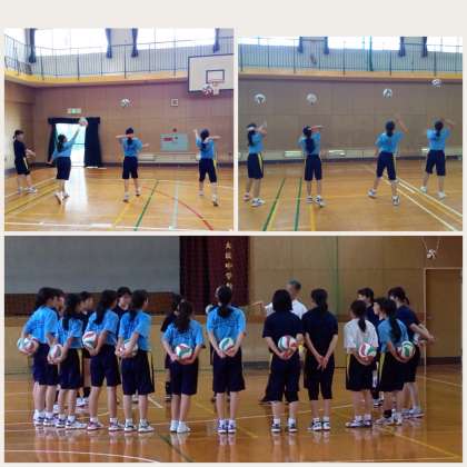 バレーボール部は、そろいのTシャツ姿でのスパイクの基本練習。