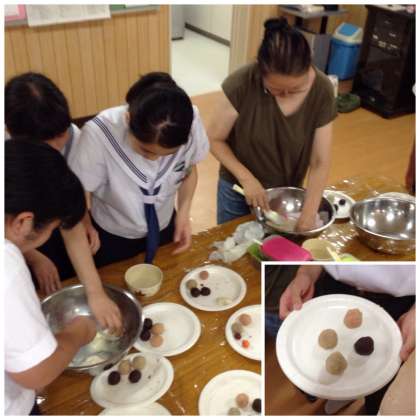 茶道部は、地域からお越しの指導者の方とお菓子作りをしました。