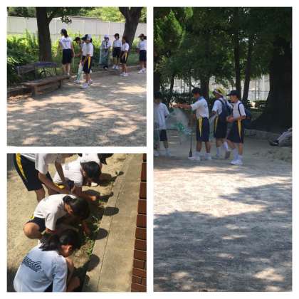 大変、暑い中でしたが、地域の方といっしょに、あるいは、声をかけていただき見守られて活動を行いました。大粒の汗をかきましたが、すっきりして、夏休みです。