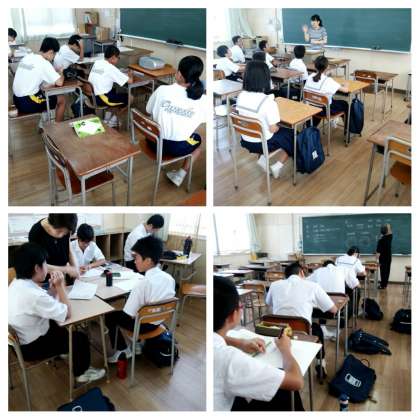 今日は1年生は国語と英語、2年生は数学と国語、3年生は理科と英語をしました。