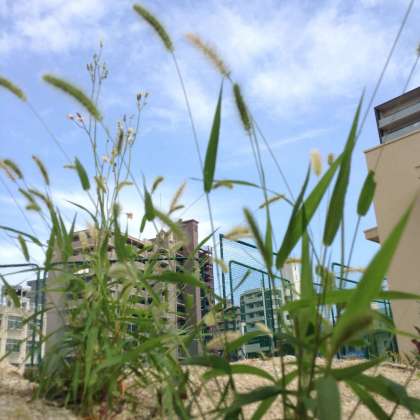 運動場の片隅では、雑草に混じって「ネコジャラシ」。