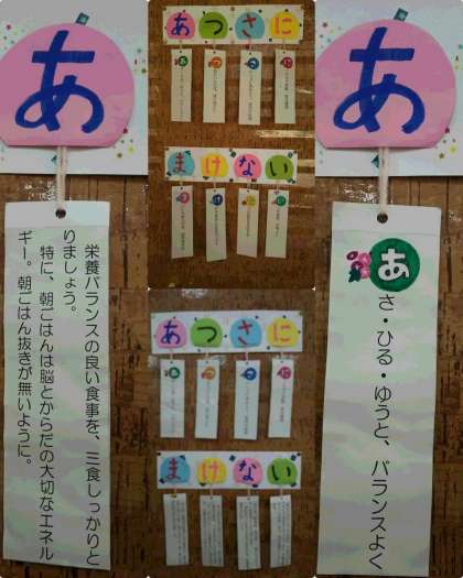 夏の生活習慣で気をつけてほしい内容が、風鈴の様に掲示してあります。