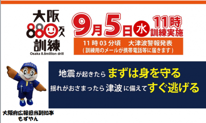 本日11時から予定されていました「大阪880万人訓練」は中止になりました。