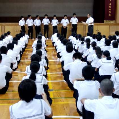 今日の全校集会では、8月の大会でしたが水泳部の伝達表彰も行いました。先週は、JOCハンドボール近畿大会の大阪代表チームの一員として優勝した生徒の表彰もあり、3週連続の伝達表彰でした。おめでとうございます。