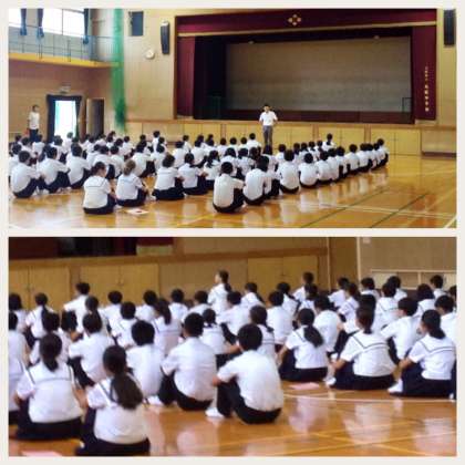 今日は、先週、台風が通過した翌日ということで、臨時で朝の全員清掃を行ったためにできなかった1年生の学年朝礼を行いました。
