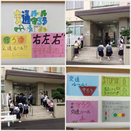秋の全国交通安全運動が、21日から30日に実施されることにあわせて、手作りポスターを使って、交通ルールを守り、車に充分気をつけるよう呼びかけてくれています。