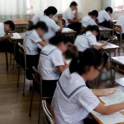3年生は本日、第2回実力テストです。今後、進路を考える上でも大切なテストになります。各自持っている力を出し切って、真剣にテストを受けています。