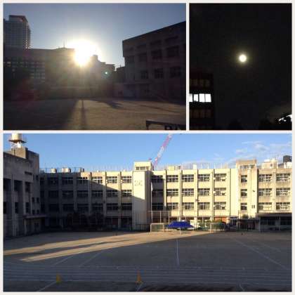 今朝は秋晴れ!!本日の予行は、昨日の生徒の皆さんのおかげもあり準備万端です。昨夜は、一日遅れですが、きれいに中秋の名月を見ることができました。