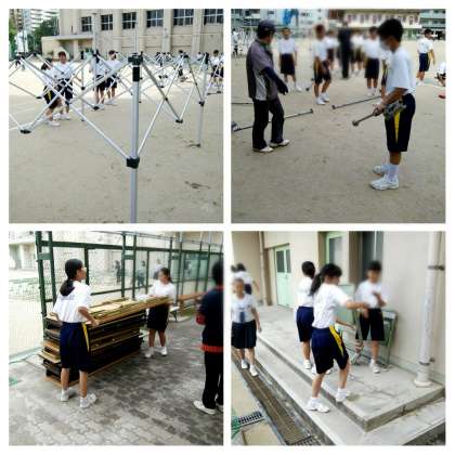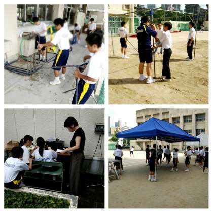 運動場を整地してラインを引き、テントや長椅子を出して会場を準備しました。係生徒の皆さんはきびきびと動いて、会場が仕上がりました。