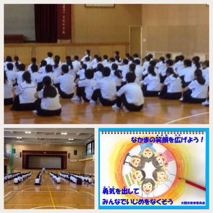今日は、学年主任の先生から、「言葉の大切さ」などについてのお話がありました。「言葉は人と人をつなぐ大切なツールです。しかし、使い方を間違うと相手を攻撃したり、傷つけたりすることがあります。大阪市教育委員会からいただいたポスターにもあるように、『言葉』を仲間の笑顔を広げるために使っていきましょう。」という旨のお話でした。