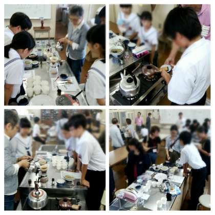 生豆から焙煎して、コーヒーをたてて味わいました。香りが教室の外まで広がりました。生徒だけでなく参観に来られた保護者の方も試飲して、本物のコーヒーのおいしさを味わいました。
