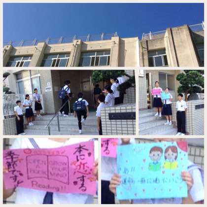 毎朝、7人の生徒会役員の皆さんが、登校する生徒と挨拶を交わしてきました。あたり前のように、毎日、早めに登校して、挨拶運動の旗をセットしてからの挨拶。また、時々にポスターを手に持っての挨拶。