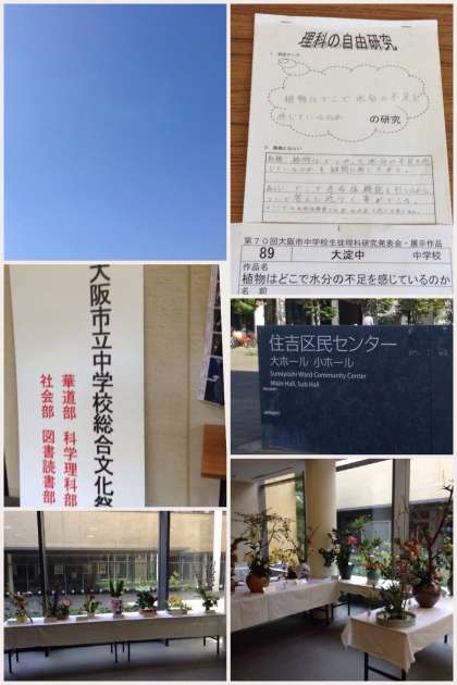 快晴に恵まれた日曜日。総合文化祭展示発表の住吉区民センター会場では、本校からは表彰を受けた理科の自由研究のレポートが展示されていました。ほかにも会場では、