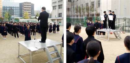 学校に接する通りのイチョウは今、きれいに色づいてきています。春から夏に向けて葉を茂らせ、秋には銀杏を落とします。色づいた葉は、一年の役割を終え、地面に落ち冬に備えます。生徒の皆さんも、一年の終わりに向けてしっかりと振り返り、見つめる一か月にしてほしいと思います。