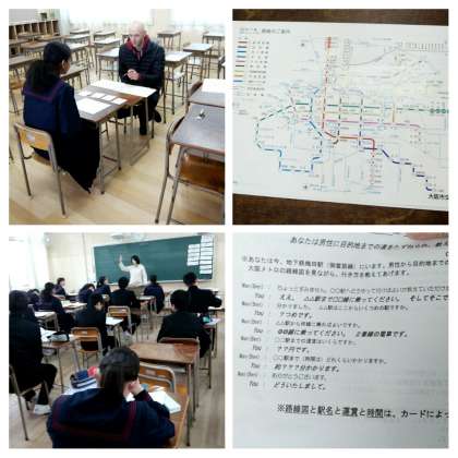 3年生の英語の授業では、C−NETの先生が個別に生徒と面接形式でテストをしています。