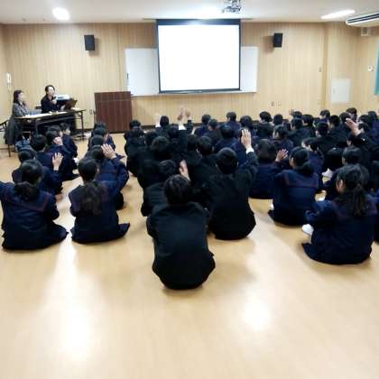 NTTドコモと法務局人権擁護委員の方にお越しいただいて、「スマホ・ケータイ人権教室」を行いました。