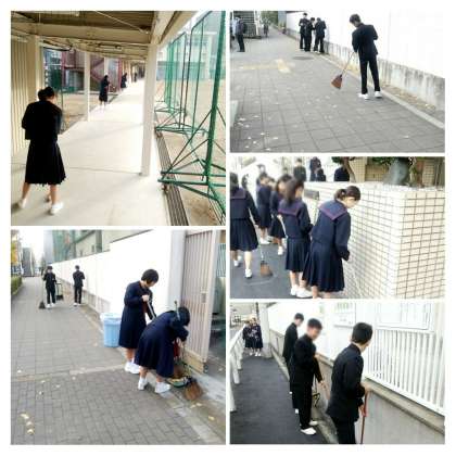 2学期最後の早朝清掃です。霧がうっすらとしているなか、生徒たちは早朝清掃に励みました。