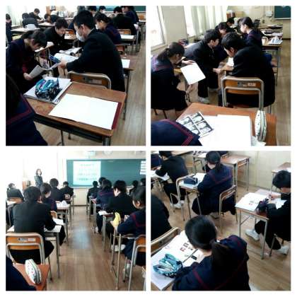 「Striving for a Better World」の単元を学習しました。名詞+主語+動詞の語順で名詞を修飾する「接触節」の用法を学びました。ペアリーディングで本文音読し、互いにアドバイスしました。授業は英語の音楽で始まり、たくさんの英語に触れて表現できる時間になっています。