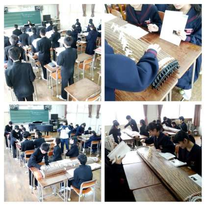 箏の基礎的な奏法、読譜の仕方を身につけられるよう、「さくらさくら」を練習しました。演奏する生徒以外は、唱歌を歌いながら演奏生徒のフォローをしました。