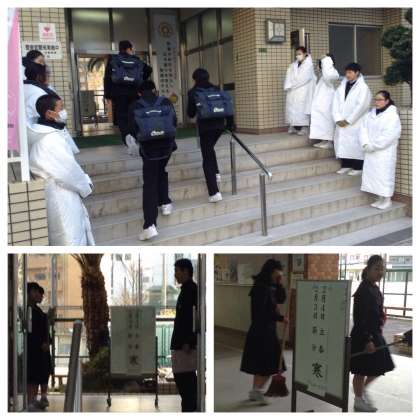 生徒たちは、寒い朝にもかかわらず、生徒会役員による朝の挨拶運動、風紀委員による朝の声かけ運動、早朝清掃と、朝から一人ひとりが責任を果たしています。