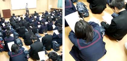大阪の私学の高校入試を明日に控え、3年生は緊張の面持ちで授業を受け、5時間目は先生方から「試験前日」「試験当日」「試験場」で注意すべきことの最終確認を受けて下校しました。