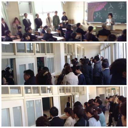 第75期生を迎える入学式。たくさんのご来賓と保護者に見守られて厳かに行うことができました。関係の皆様、ありがとうございました。また、早朝より受付や来賓控え室のお仕事をしていただきましたPTA役員、実行委員の皆様、ありがとうございました。
