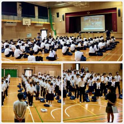 8月になりました。3年生は、本日登校日でした。体育館で平和学習をしました。今年は沖縄戦について学習しました。
