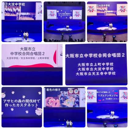 舞台の様子は、Live配信されました。発表は、天王寺中学校、上町中学校と合同して編成した「大阪市立中学校合同合唱団2」として合唱しました。