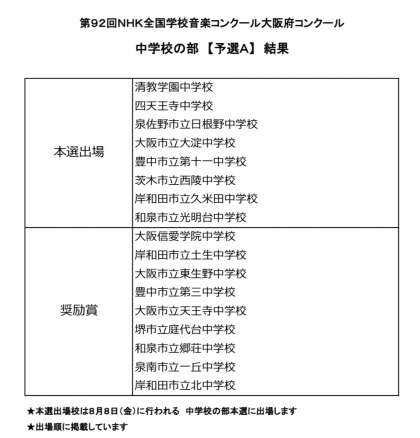 本日、NHK全国学校音楽コンクール大阪府コンクール予選大会が行われました。その結果、予選突破しました!?