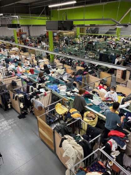 2日目の活動内容は、繊維業界で、SDGsの課題となっている古着やデッドストックなどの分別工場を見学し、課題の取組を学び、その後、古着やデッドストックなどから、衣装を作る素材を選びました。実際に、たくさんの古着の山をみて、「今着ている洋服をしっかりきこなしていきたいと思います。」と言っていました。明日からは、古着を活用して、衣装づくりがはじまります。