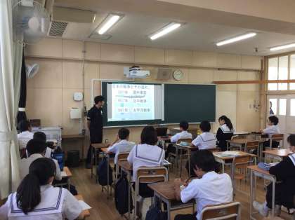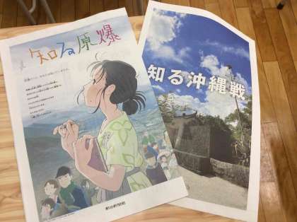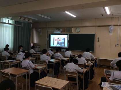 2年2組から各教室へオンライン配信し、平和学習を行いました。