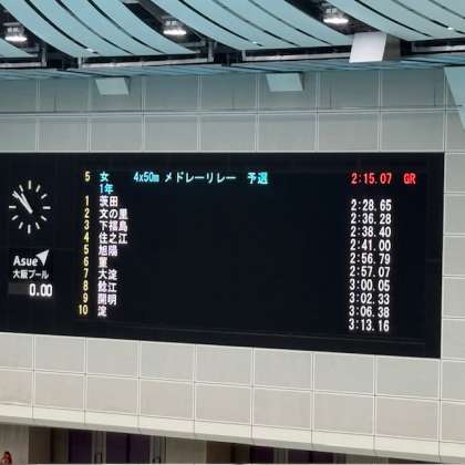 1年女子4??50mメドレーリレーは予選を勝ち抜き、決勝進出が決まりました。