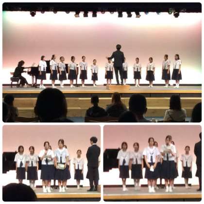 夏休みもいよいよ大詰めを迎えました。8月22日(金) 合唱部は大阪市立中学校総合文化祭 第2ブロックC地区音楽会に出演しました。広島地方わらべうた「烏かねもん勘三郎」と信長貴富作曲の「天空歌」の2曲を披露しました。