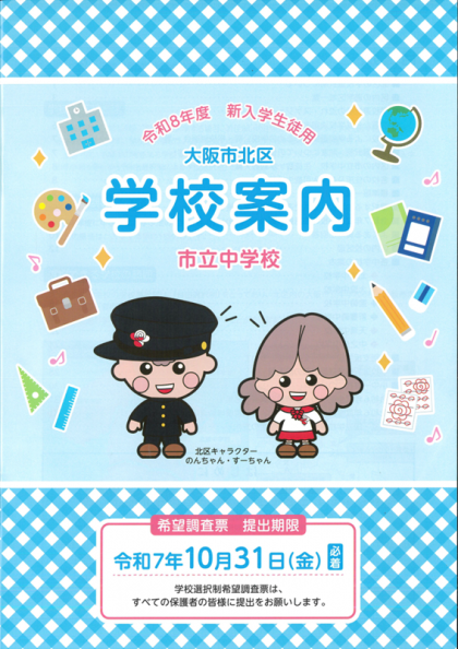 来年度新中学1年生として、進学される方を対象に学校公開と説明会を次の日程で行います。