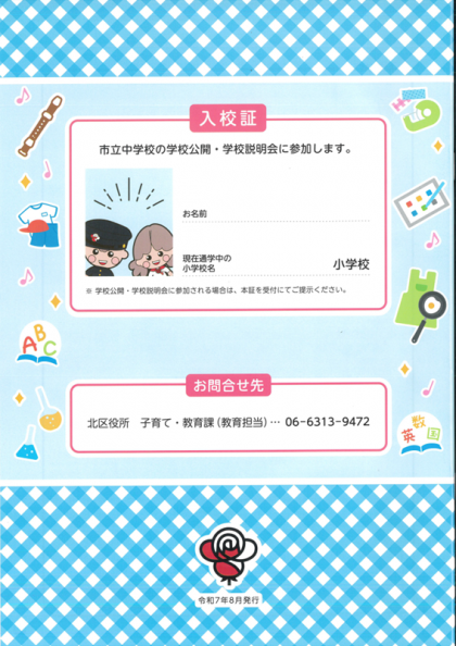 ※当日参加される方は、学校案内を持参のうえ、裏面にあります入校証への記入と受付でのご提示をお願いします。