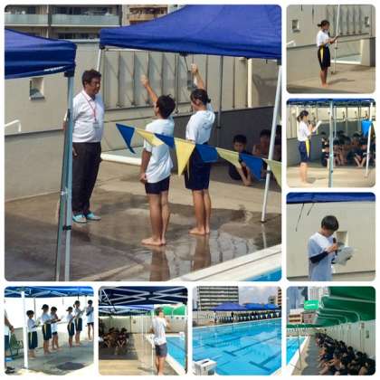 今日は、水泳大会最終日です。3年生が水泳大会を開催します。