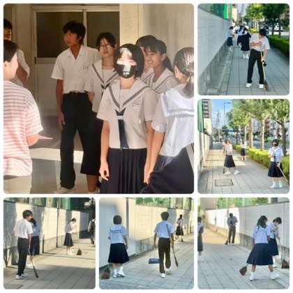 まだまだ暑い日が続いています。9月12日(金)2学期の早朝清掃が始まりました。今日は2年生と3年生の実施です。